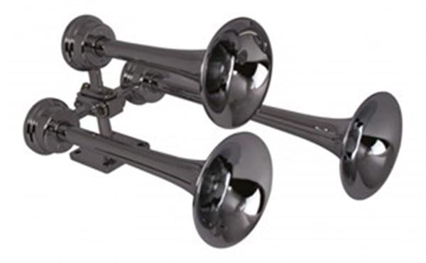 Buell üçlü ayak bağlantısı. Aynı veya farklı ebatlardaki üç kornayı birbirine bağlama imkanı verir. Korna hariçtir.